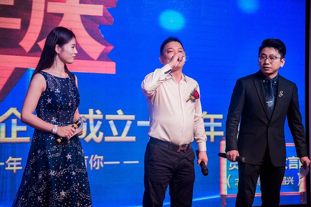 在所有表彰結束后,主持人邀請茅總登臺宣布“卓倫企業十歲了”,在全場的掌聲中,大家高舉酒杯祝賀“卓倫企業成立十周年!”,慶典活動正式開始。